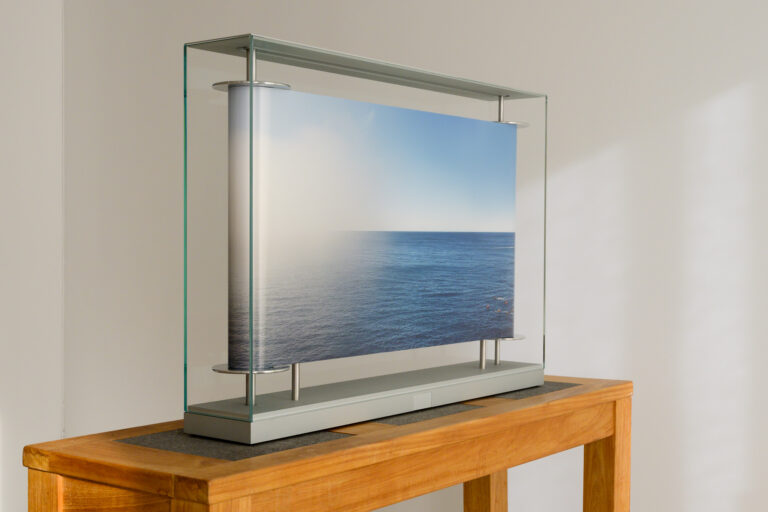 Alliant ingénierie de précision et poésie de l’image, l’horloge photographique emprunte autant à la mécanique qu’à l’art cinétique. Elle fait défiler la photographie dans un imperceptible mouvement, révélant uniquement la portion du paysage correspondant au moment présent.